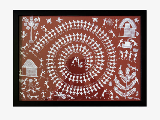 Warli Red Circle of Life Art PaintingRegular price $195.00 USDRegular priceUnit price / per-