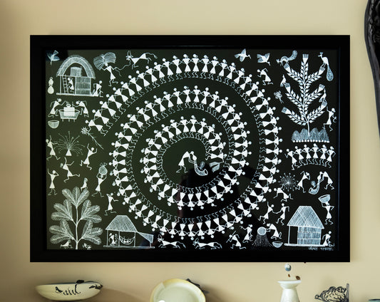 Warli Black Circle of Life Art PaintingRegular price $195.00 USDRegular priceUnit price / per-
