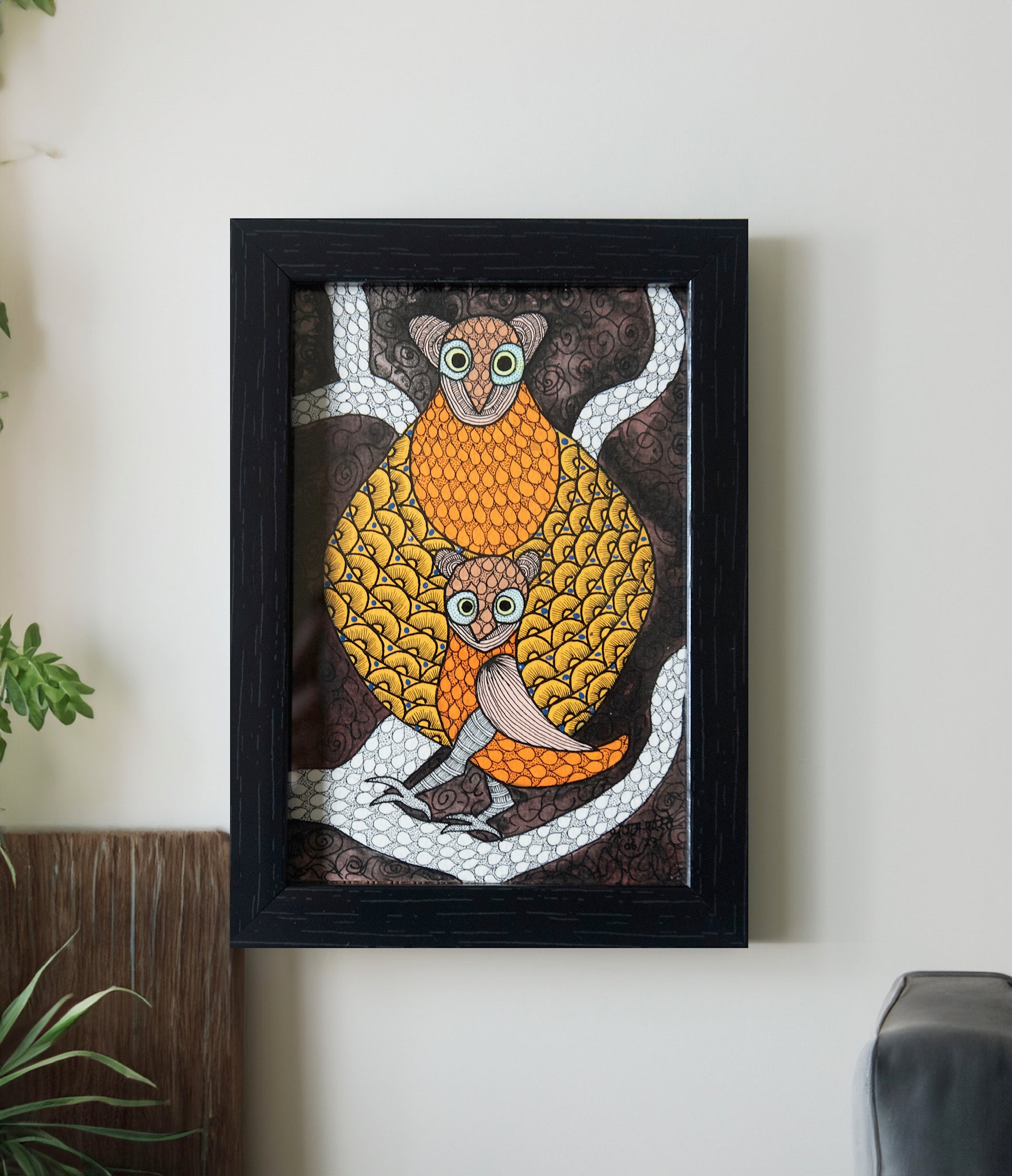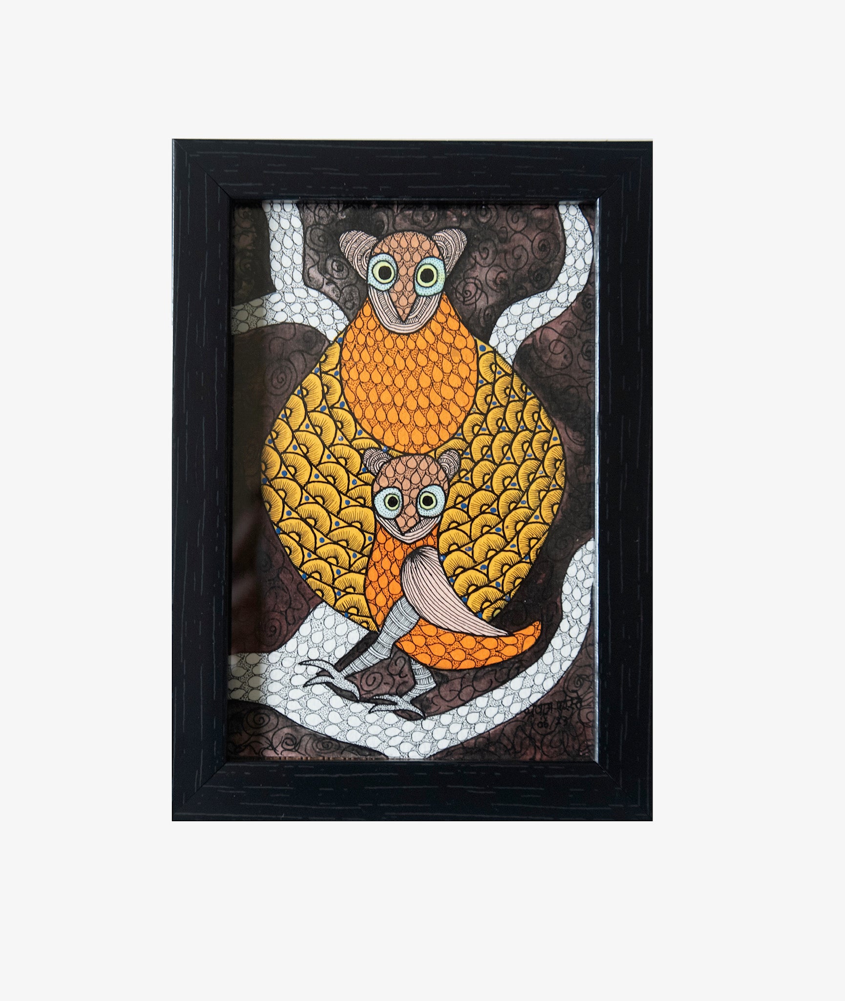 - Gond Painting hand painted by Shravan ( Natural Paint on Paper) 4x6 in framed in acrylic.