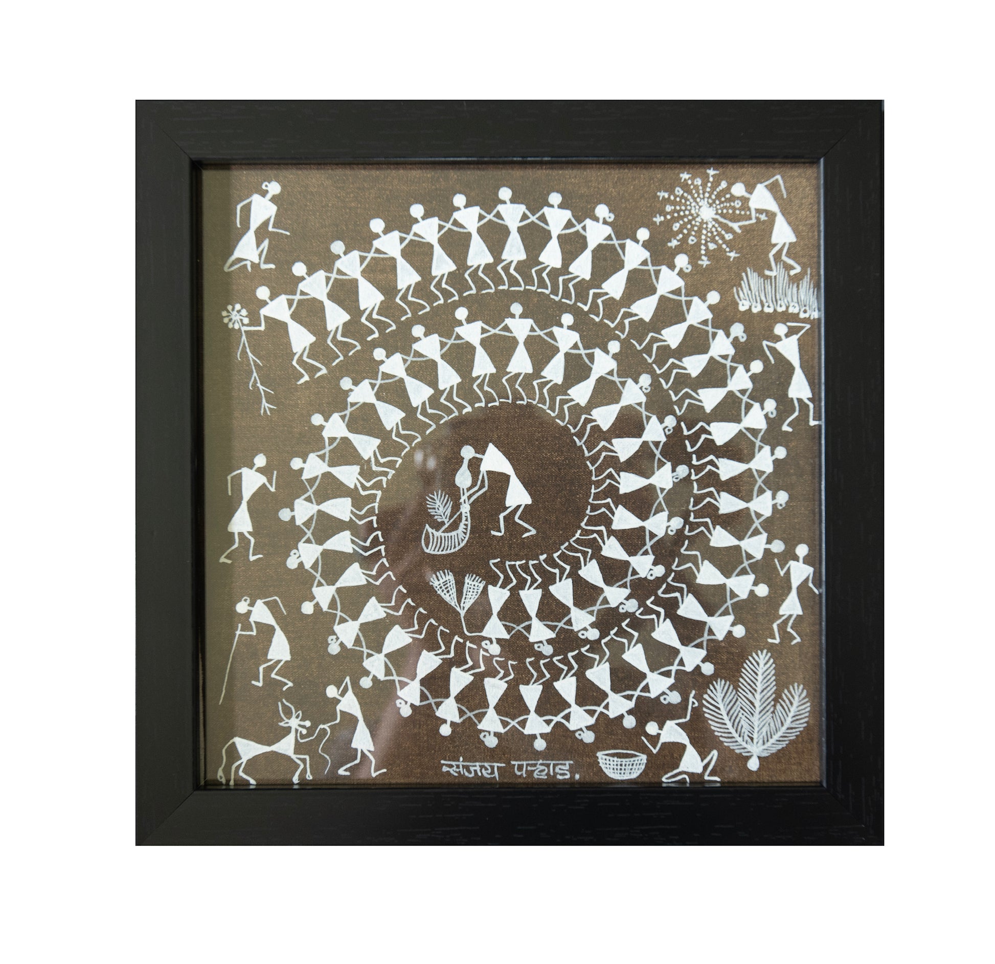 - Warli Painting hand painted by Sanjay ( Natural Paint on Paper) 8x8 in framed in acrylic.